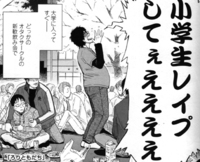 先生はなんと言っても、今年、いや去年の「ろりともだち」で日本中にさまざまな問題を投げかけたというか、炎上させたというか、鬱にさせたというか(笑)いや、とにかくエロマンガ界で非常に話題になる作品を発表したことで一躍有名になられたと思います。 |